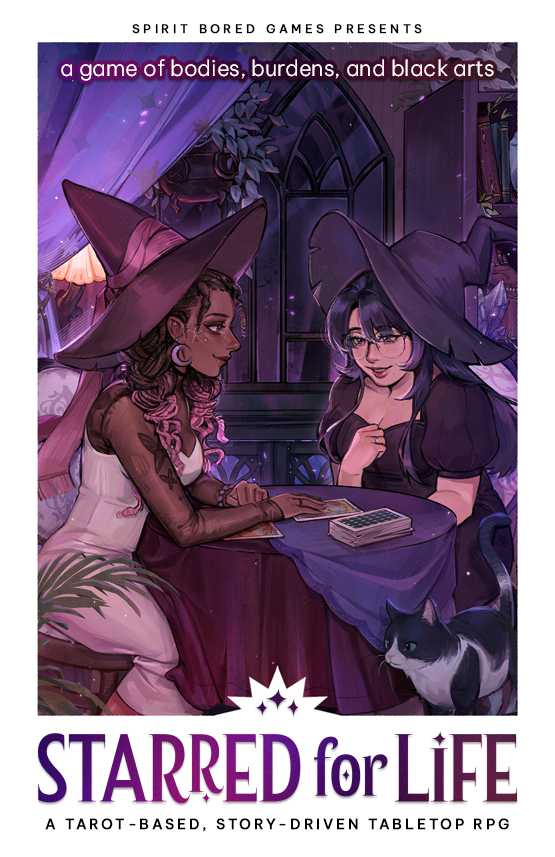 A game about cute witches in an uncute world. Starred for Life is a tarot-based, story-driven tabletop RPG. Players work to manage their duties and accomplish their dreams while the Master of Ceremonies builds their world— and gives them tough choices to make along the way.